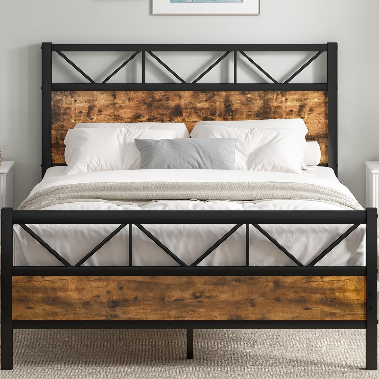 Material: The bed is constructed with high quality of MDF(Engineered wood) and heavy metal. The bed frame is built with an all-metal support system, which is sturdy and durable. This metal construction ensures the bed's durability and strength.