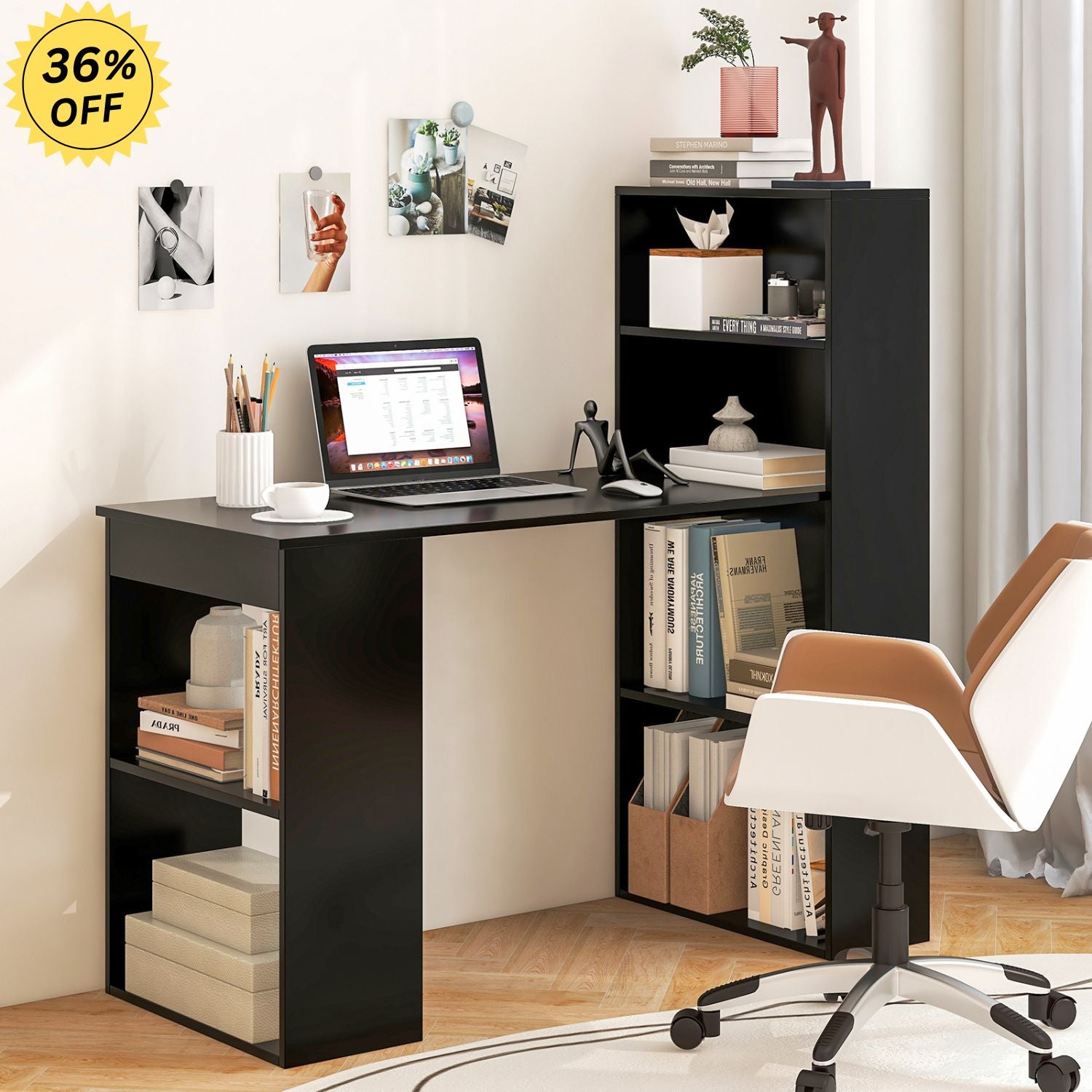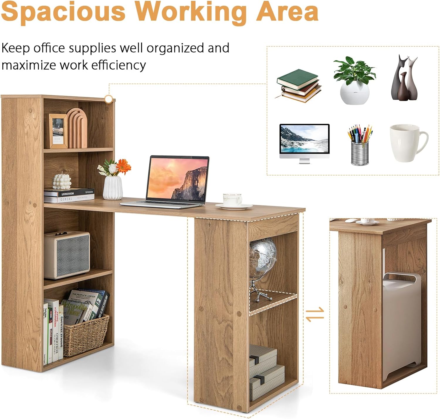 Compact Design: Despite its ample storage capacity, the desk features a compact design that is suitable for bedrooms, studies, home offices, or smaller office spaces. Its space-saving design maximizes vertical storage while minimizing the desk's footprint, making it ideal for tight or limited spaces.
