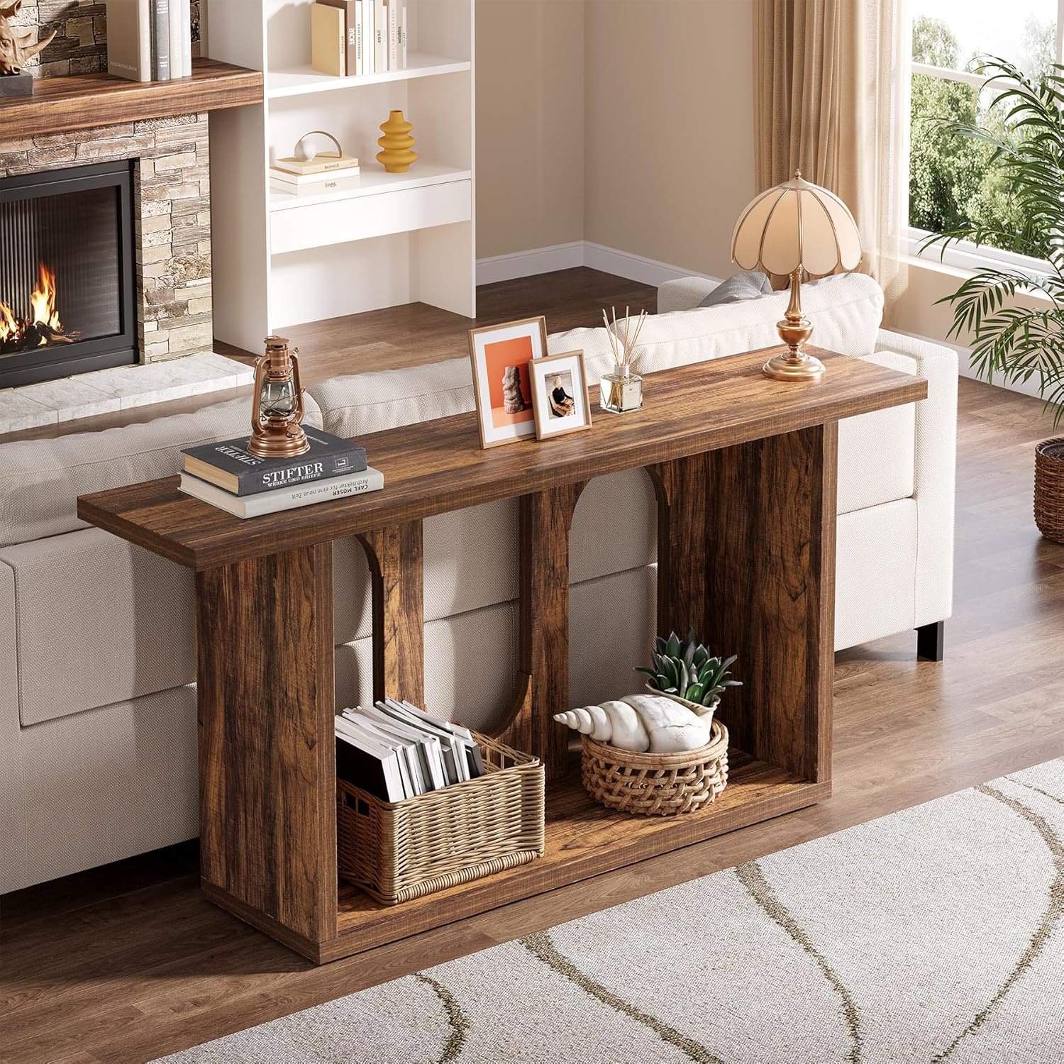 Product Details: Enhance your living space with this vintage-inspired farmhouse entryway table, featuring a stunning industrial design. Crafted from high-quality MDF, this narrow accent table blends rustic charm with modern functionality. The 2-tier design offers ample storage space, making it perfect for your hallway or living room. Whether used as a sofa table, entryway organizer, or decorative display, this versatile piece adds warmth and elegance to any home.